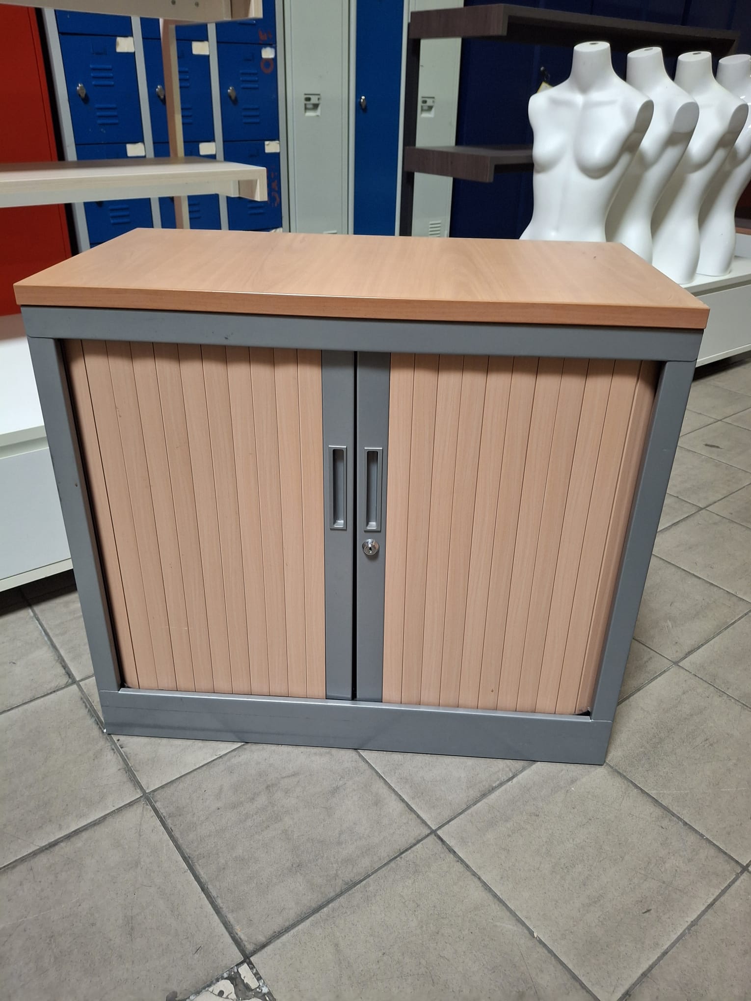 Armoire basse de bureau – Métal gris et plateau bois – H72xL80cm