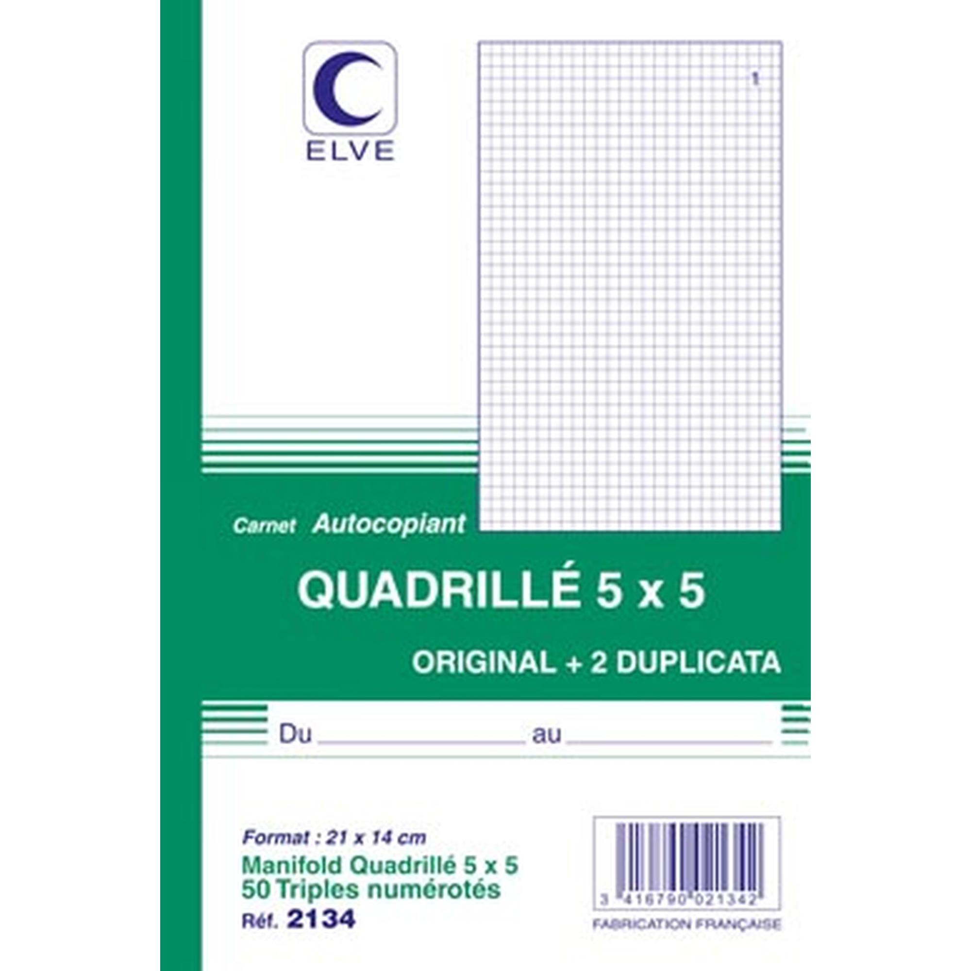 Carnet autocopiant quadrillé – ELVE – 210 x 140 mm – 50 feuilles – en triple